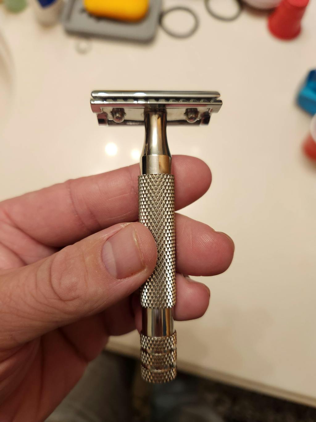I have come to like the RR stainless steel handles so much that I have gotten a few of their different designs. The bulldog handle is one of my favorites so far. Excellent balance of length, width and heft. Really like the design of the knurling on the end for against the grain shaving as well.